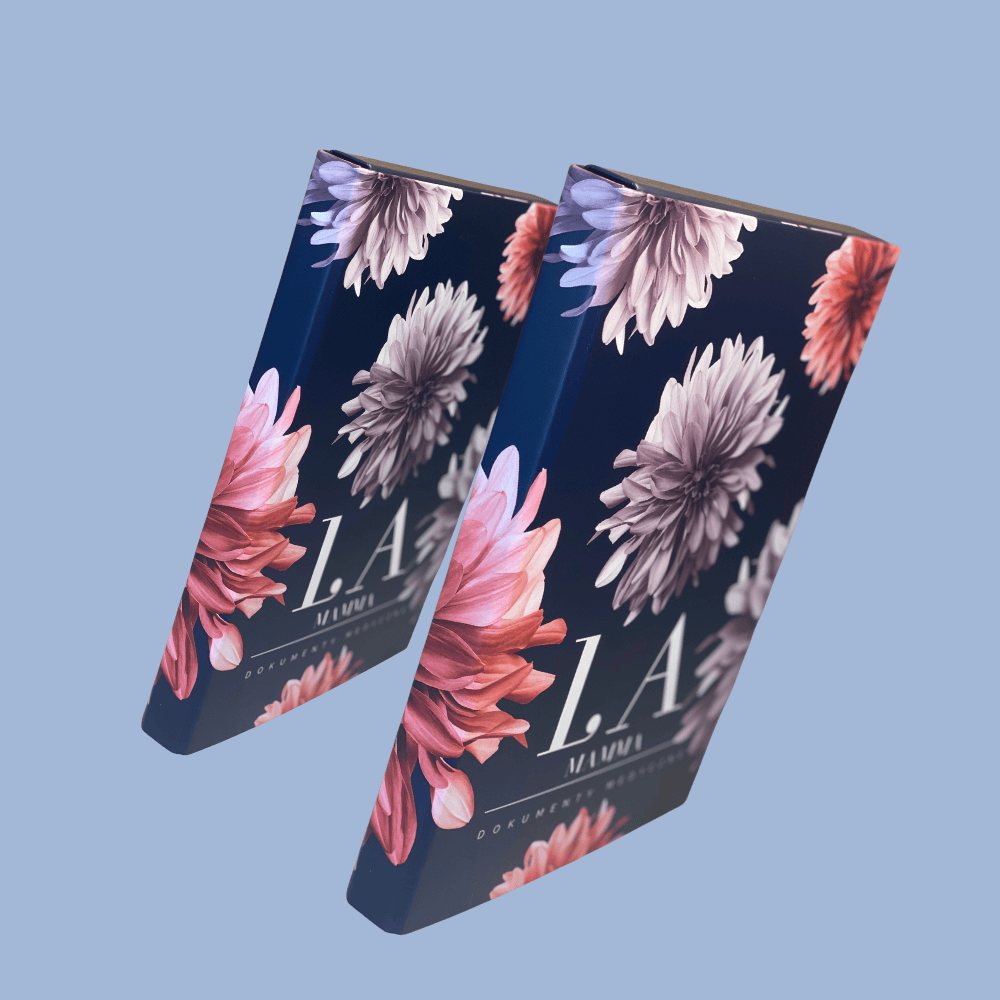 Teczka La Mamma BOX na dokumenty medyczne jest dostępna w dwóch wersjach kolorystycznych. Odcienie teczki mogą minimalnie różnić się w rzeczywistości od tych, które Ci się tutaj wyświetlają z uwagi na kalibrację kolorystyczną ekranu urządzenia, z którego korzystasz.