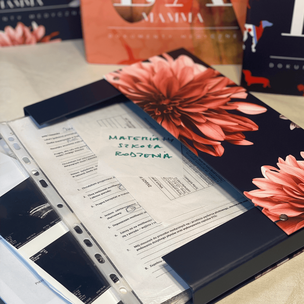 W jednej, porządnej teczce – bezpiecznie schowane, gotowe do zabrania w każdej chwili. Dokumenty Twoje, maluszka, zdjęcia USG, karta ciąży, książeczka zdrowia. Wszystko tam, gdzie powinno być. Zawsze pod ręką.